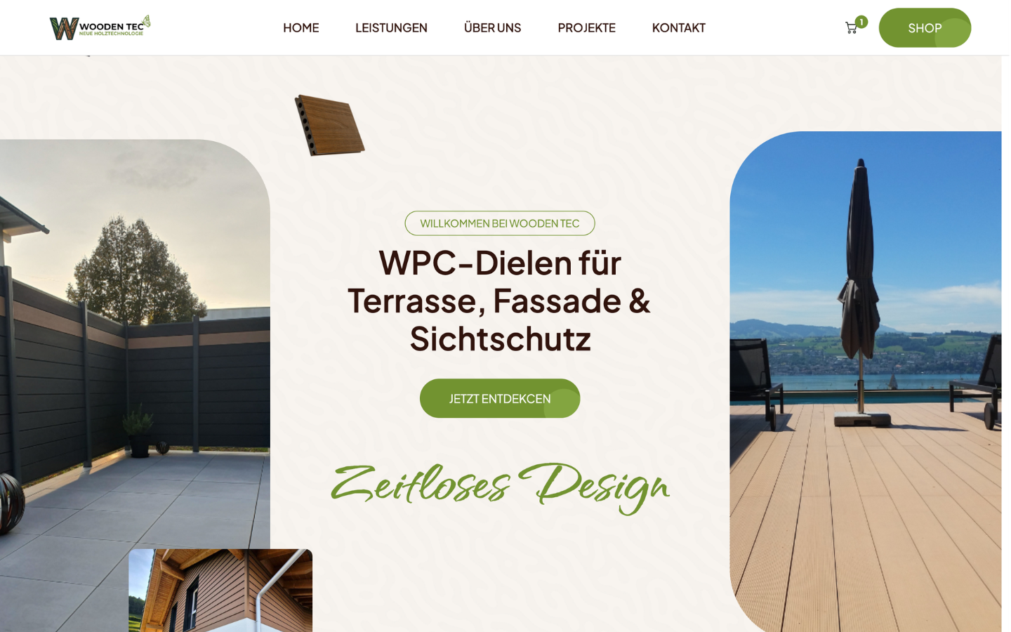 Für WoodenTec wurde eine moderne Webseite entwickelt, die die WPC-Produkte des Unternehmens klar und hochwertig präsentiert. Der Fokus lag auf einer übersichtlichen Struktur, starken Produktdarstellungen und einer klaren Nutzerführung für Bauherren, Architekten und Privatkunden.